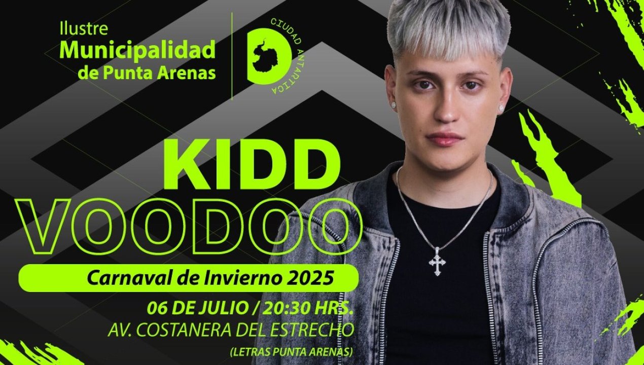 El espectáculo de Kidd Voodoo se realizará el domingo 6 de julio y será de acceso gratuito para todo el público. Con este anuncio, Punta Arenas da el puntapié inicial a una de las celebraciones más esperadas del invierno austral.