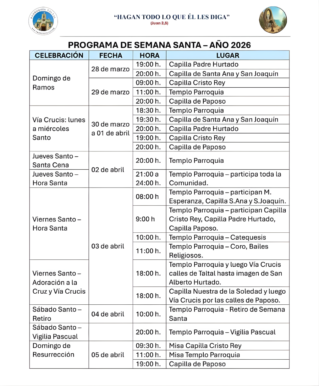 La comunidad católica de Taltal ya se prepara para vivir la Semana Santa 2026, tras la publicación del programa oficial de conmemoraciones que se desarrollarán en distintos puntos de la comuna.