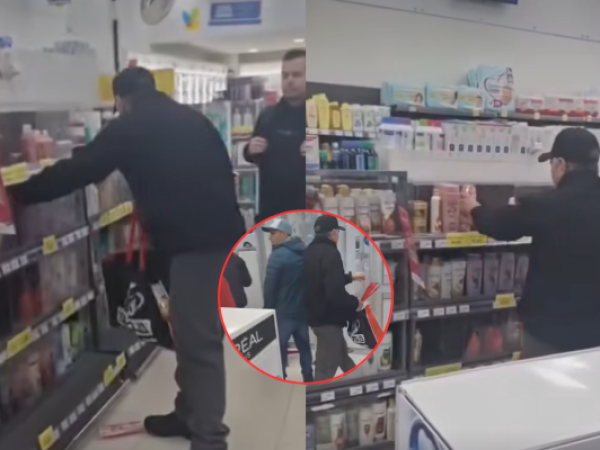 Hombre roba en farmacia a plena vista y el guardia no hace nada