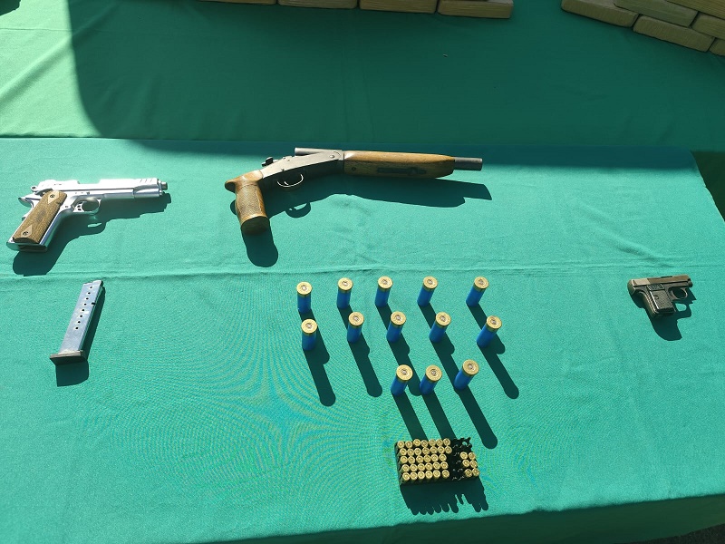 El operativo permitió la incautación de grandes cantidades de sustancias ilícitas: 169 kilos de marihuana, más de 82 kilos de pasta base de cocaína, 37 kilos de clorhidrato de cocaína y 10 gramos de hongos alucinógenos. También se decomisaron armas de fuego —incluyendo una escopeta robada y pistolas adaptadas para disparar— y 51 cartuchos sin percutir.