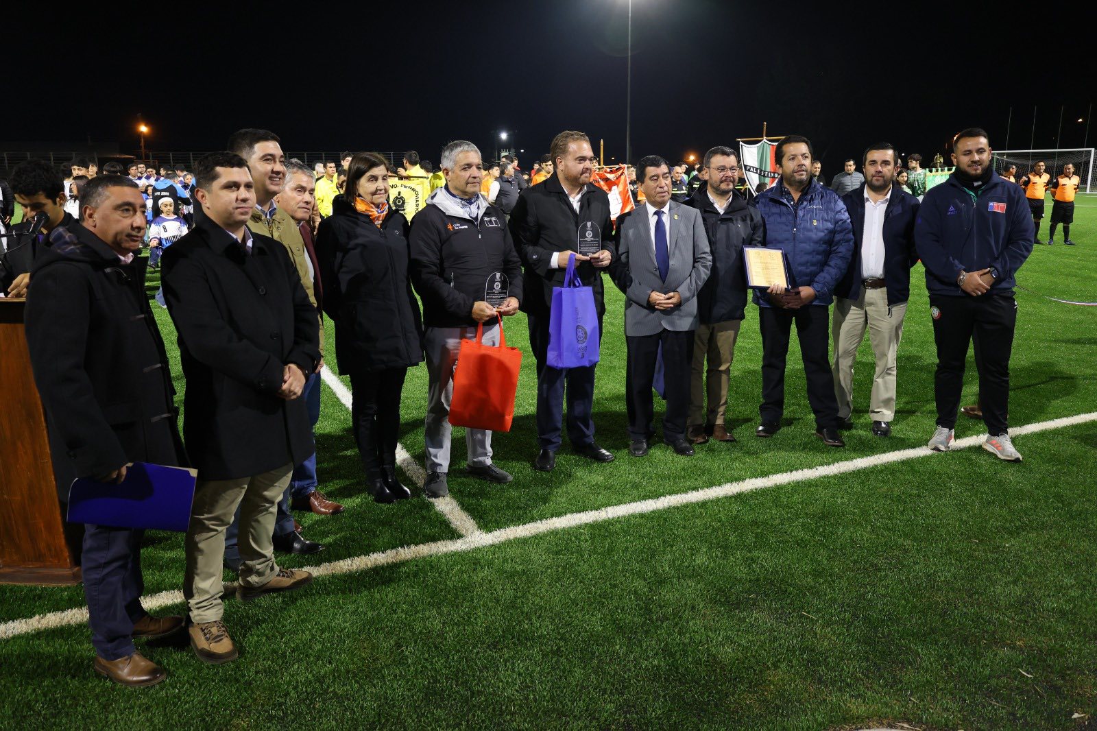 El acto fue encabezado por el alcalde Jorge Radonich Barra y contó con la presencia del gobernador regional, Sergio Giacaman, junto a diversas autoridades regionales y comunales. La obra implicó una inversión cercana a los mil millones de pesos, recursos destinados a la instalación de una moderna carpeta de pasto sintético y un nuevo sistema de luminarias, lo que permitirá el desarrollo de actividades deportivas en condiciones óptimas tanto de día como de noche.