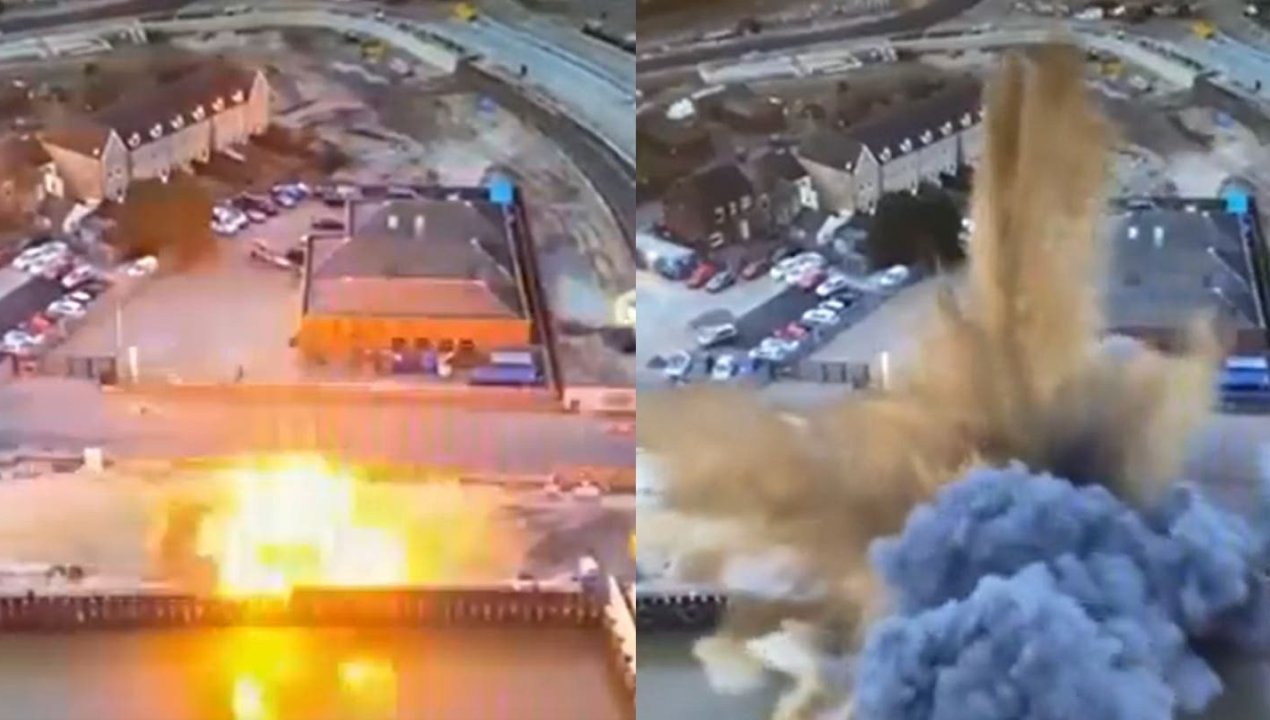 Antes de que estallara, las autoridades levantaron un muro con arena para amortiguar el impacto, el cual se oyó a kilómetros en el oeste de Inglaterra.