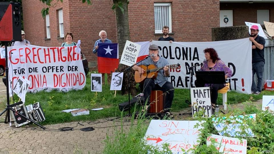 En la ciudad de Krefeld, en Alemania, un grupo de ciudadanos chilenos y alemanes se reunieron para manifestarse frente a la casa de Hartmut Hopp, doctor que participó en "Colonia Dignidad".