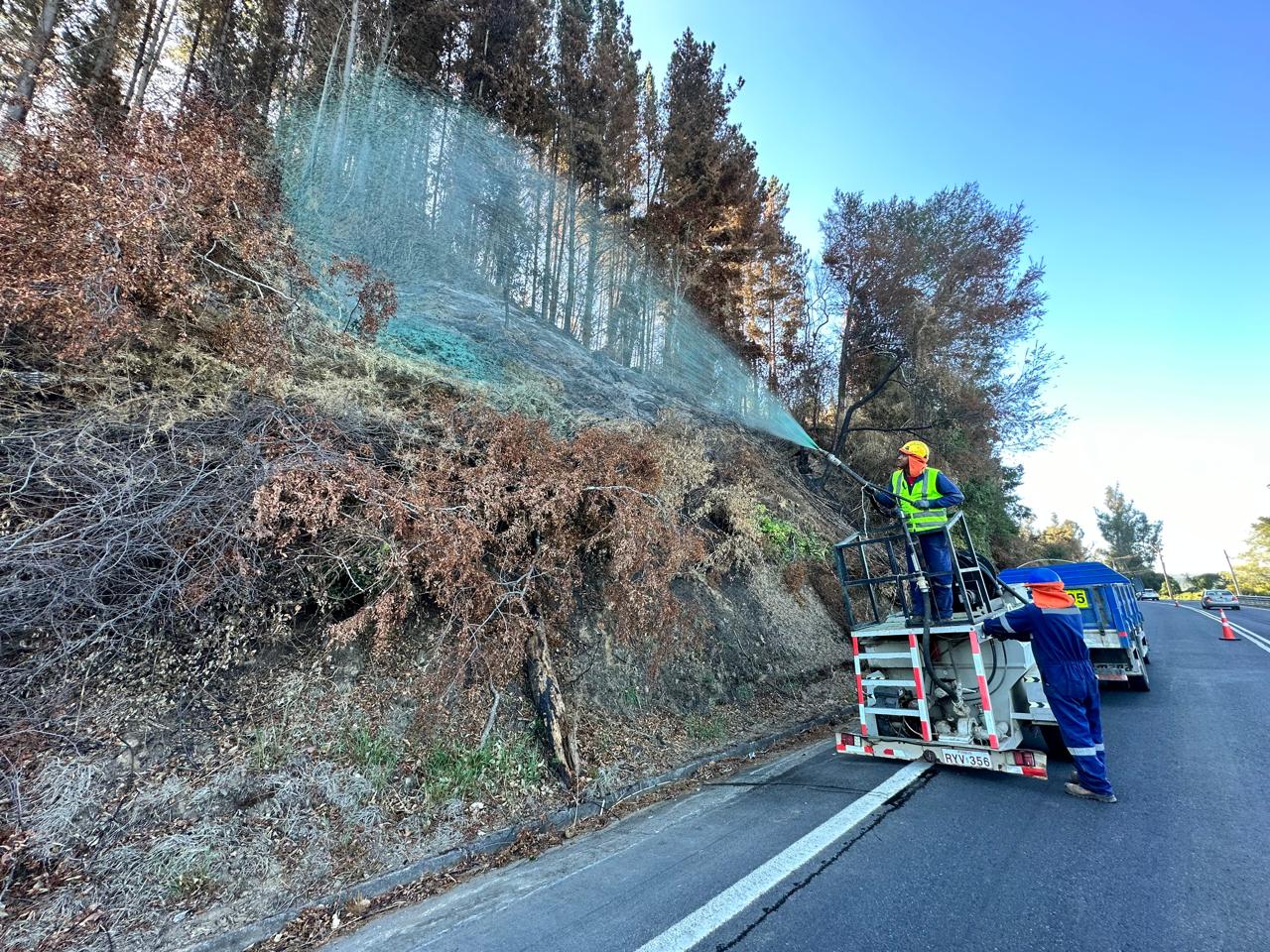 En terreno, las medidas se traducen en estabilización física y biológica: siembra de herbáceas y gramíneas, plantas tipo pastos de crecimiento rápido, para generar cobertura temprana del suelo; hidrosiembra, que consiste en aplicar por aspersión una mezcla de agua, semillas y fijadores sobre taludes con alta pendiente para acelerar el establecimiento de vegetación; e instalación de diques de madera y geotextiles en quebradas y cauces para disminuir la velocidad del agua y reducir el arrastre de sedimentos.