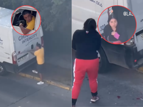 VIDEO: Pareja comete acto de vandalismo contra camión en plena vía pública
