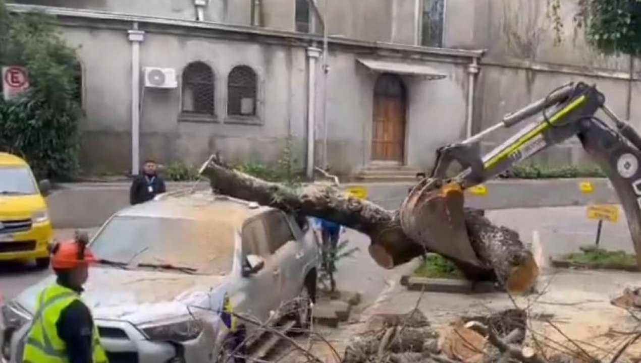 Un árbol de más de 40 años y 20 metros de altura cayó sobre el auto del alcalde de Concepción, Héctor Muñoz.